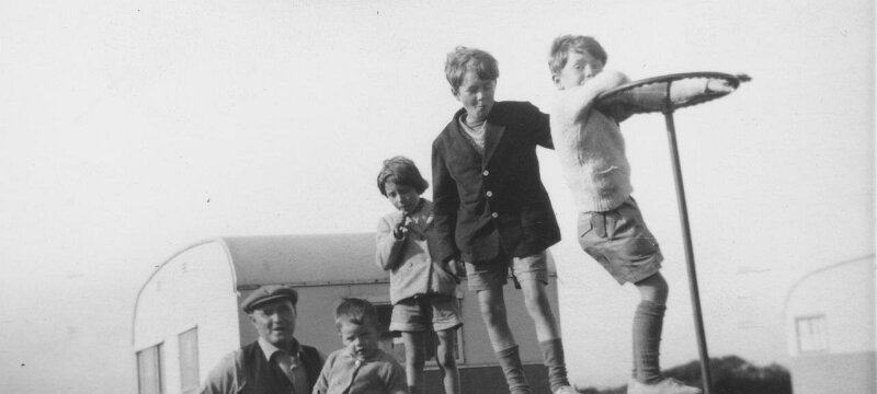 011 - Devon, Tim in the caravan