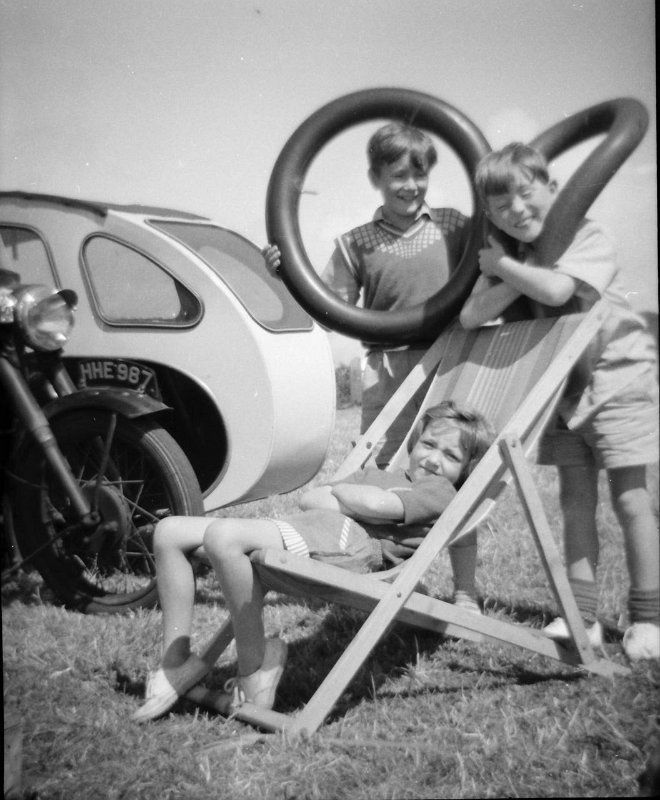 001 - Possibly Devon, Eggbert (motorcycle sidecar) with three of us