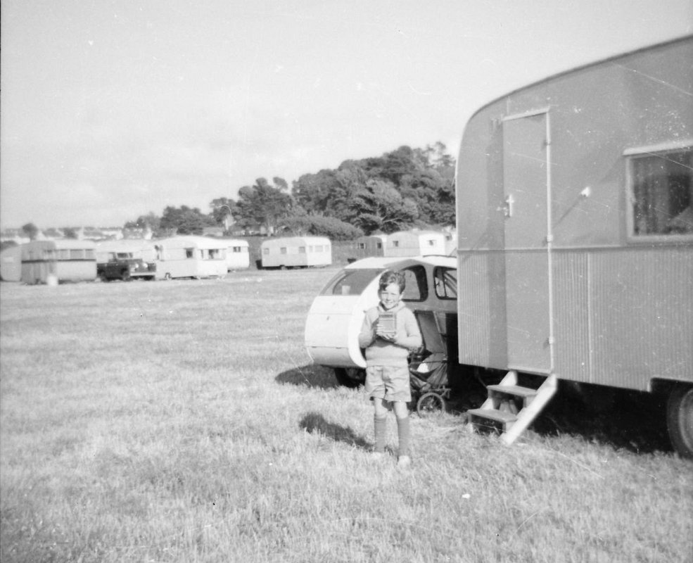 003 - Devon, Tim outside caravan and Eggbert