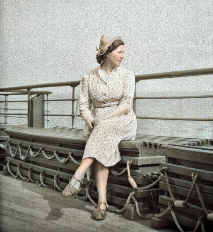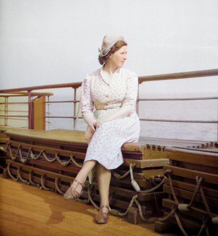 013 - Mum on the Humber Ferry, 25-Jun-1951 - colourised