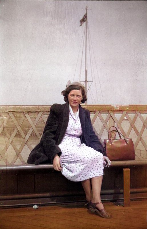 013 - Mum on the Humber Ferry, 25-Jun-1951 - colourised